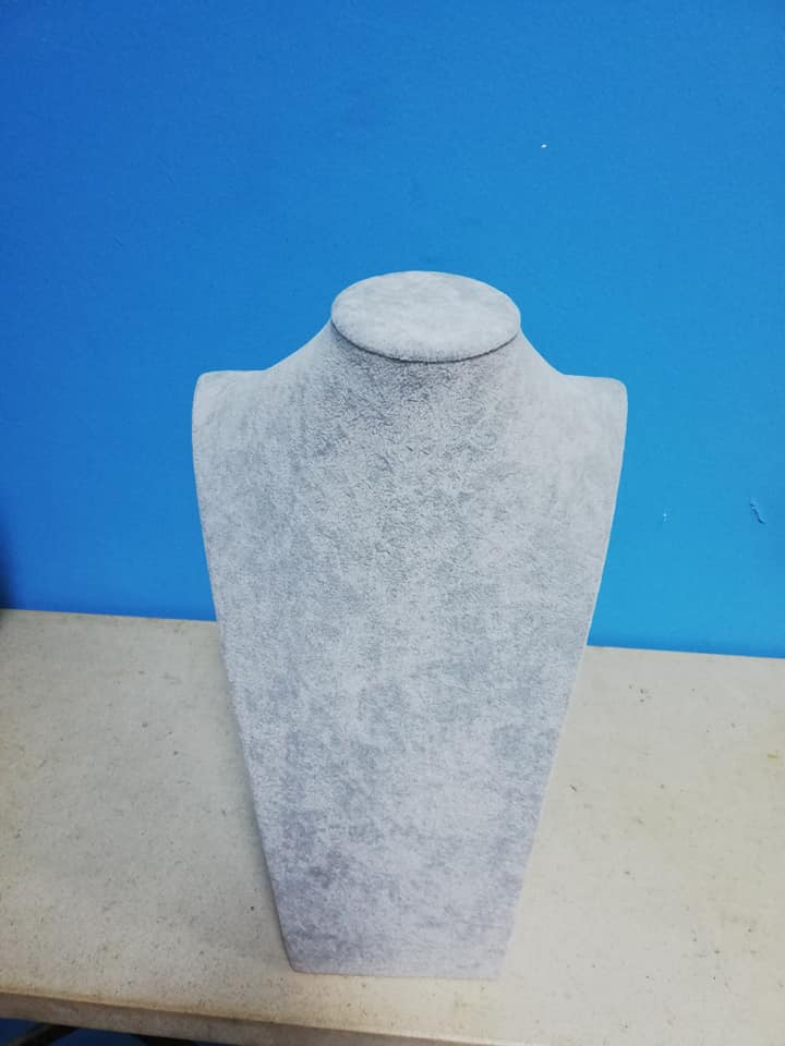 Expositor de joias cinza claro em formato de busto