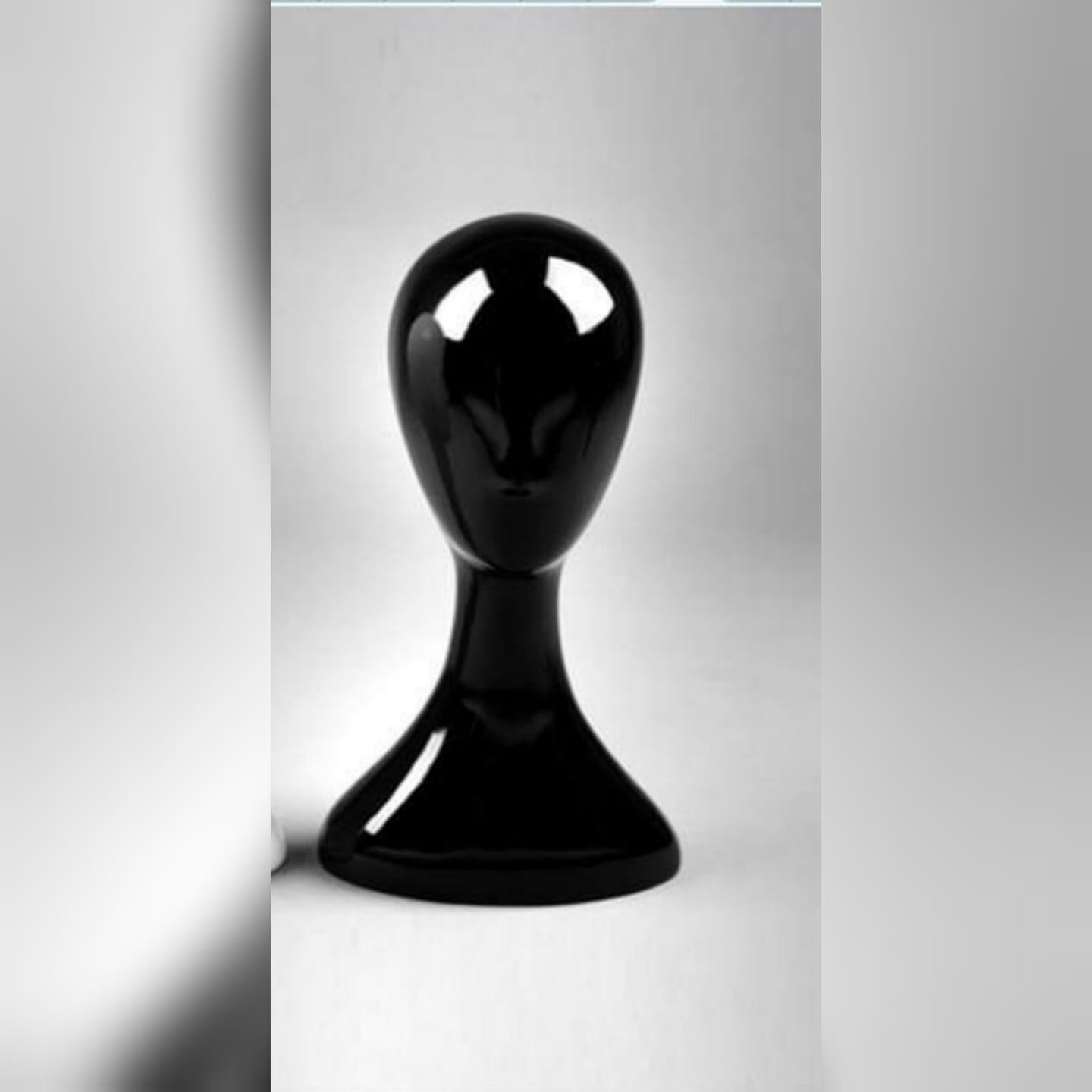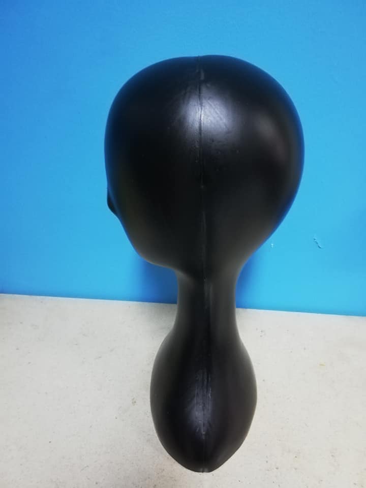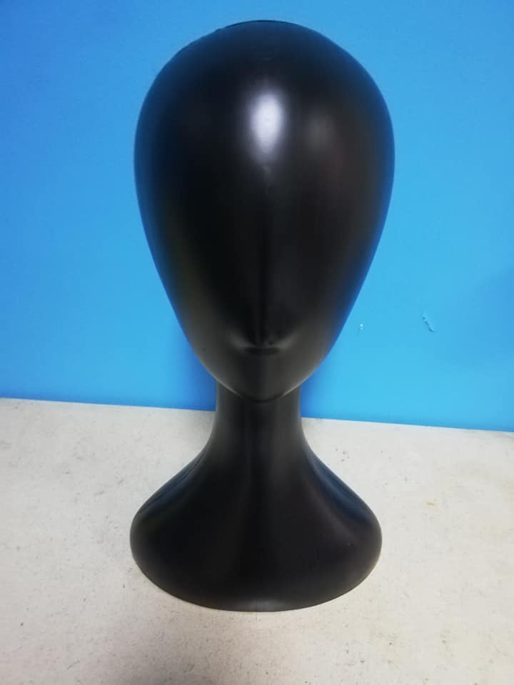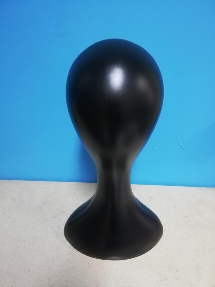 Cabeça de Manequim em Plástico Cor Preta para exposição não lacada.