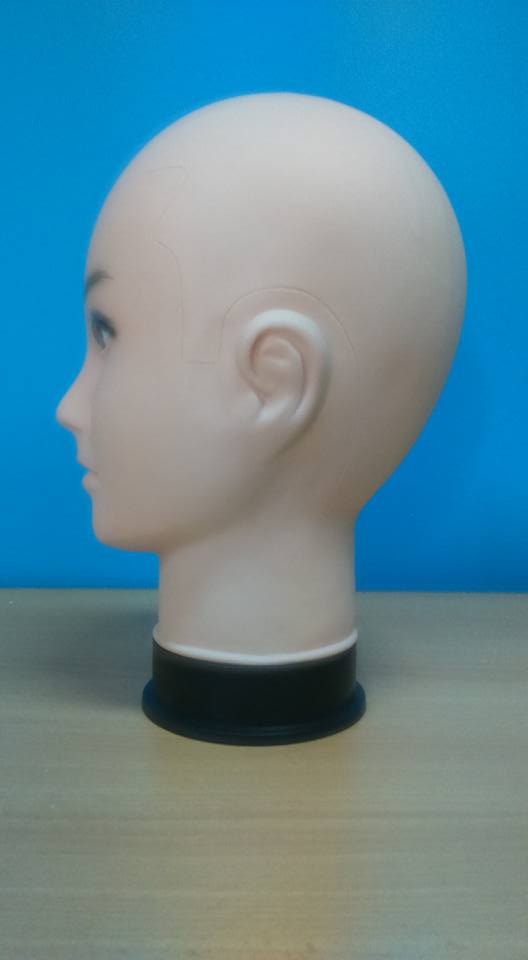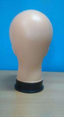 Cabeça de manequim feminina em plástico cor de pele com base preta