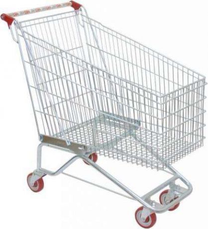 Carro de supermercado 70 litros metal zincado brilhante com 4 rodas.