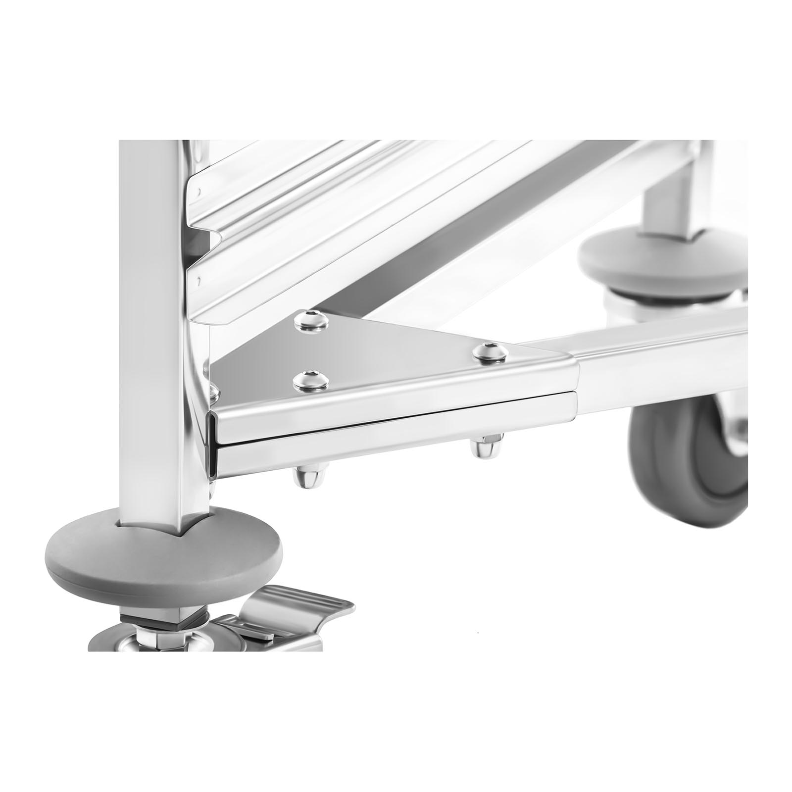 Carro de transporte de tabuleiros - 20 tabuleiros GN - 20 recipientes GN - Distância de apoio: 70 mm - Dimensões das ranhuras: GN 1/1, GN 1/2, GN 1/3 - Rolamentos com freios Aço inoxidável