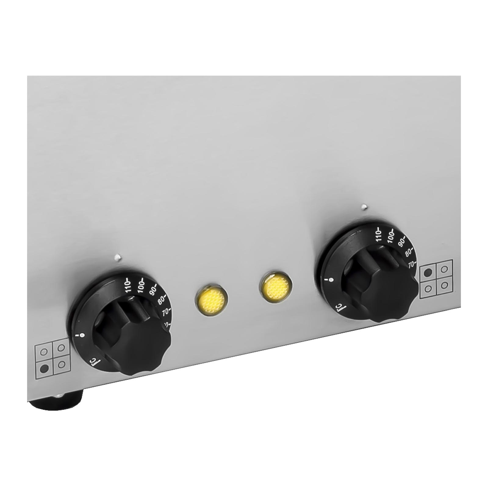 Esta estação de sopa opera com uma potência de 4 x 150 W e uma tensão de 230 V.