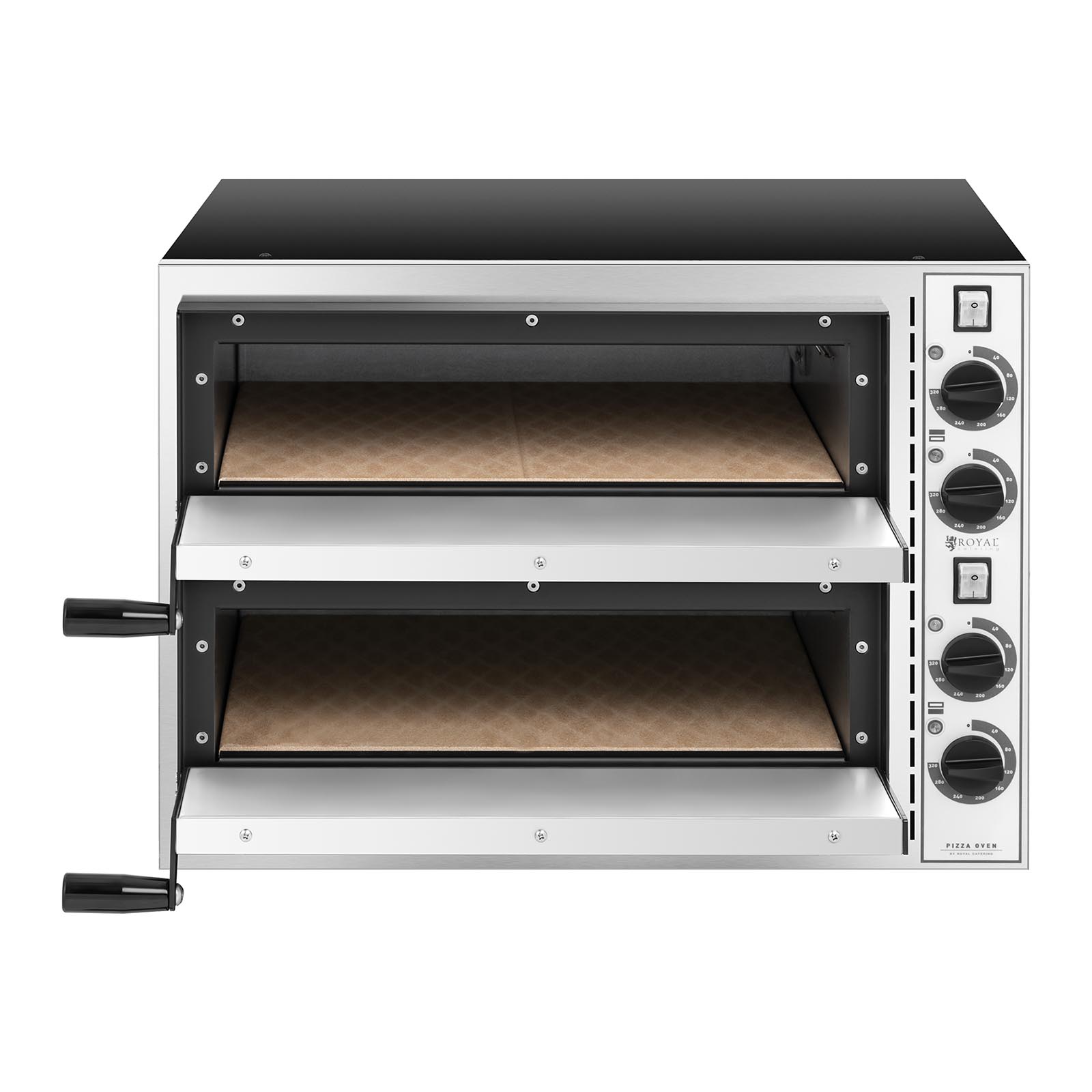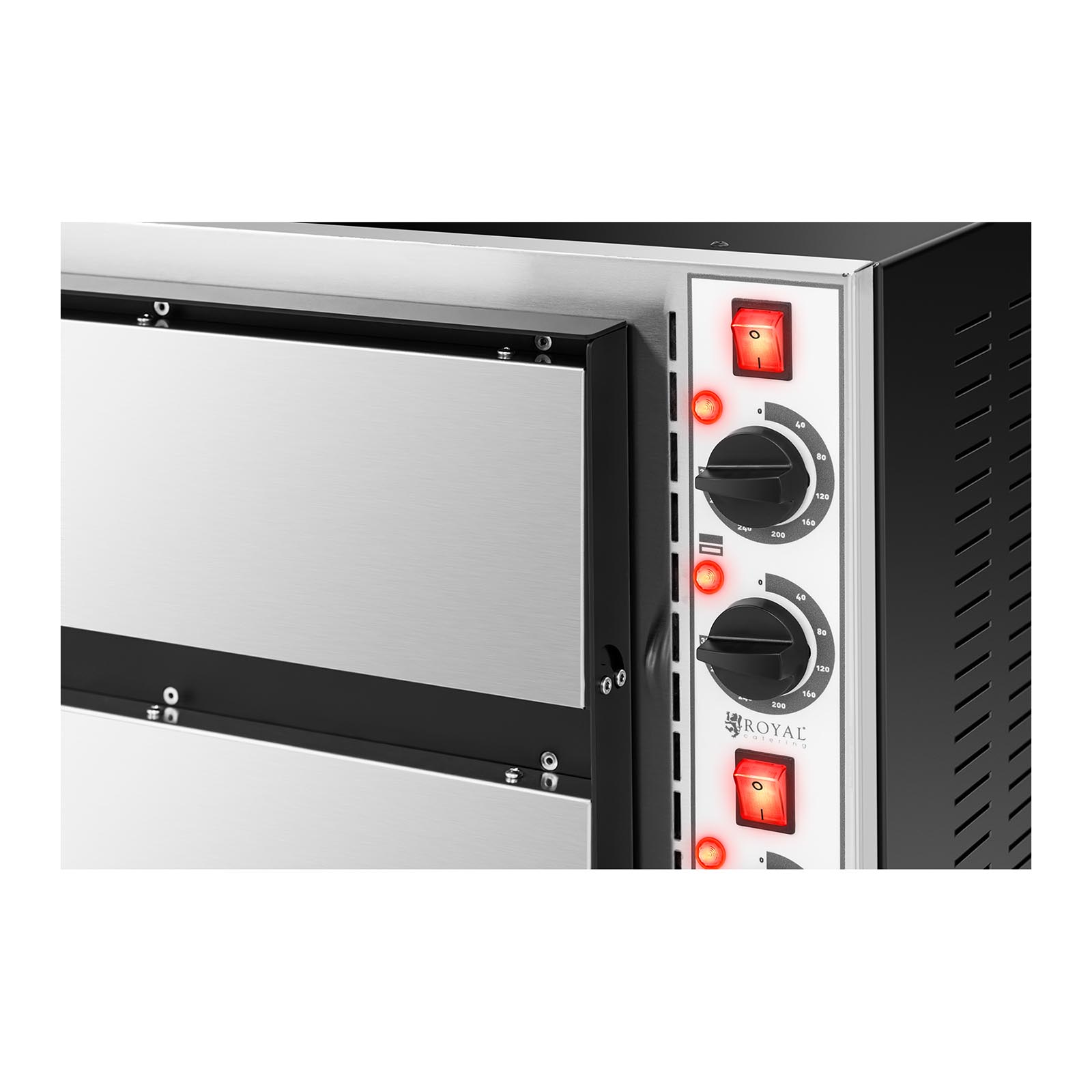 Duas câmaras permitem assar 2 massas com um diâmetro de 32 cm ao mesmo tempo. A temperatura máxima em ambas as partes da unidade é de 320°C. Um painel de controlo fácil de usar garante a definição conveniente dos valores.
