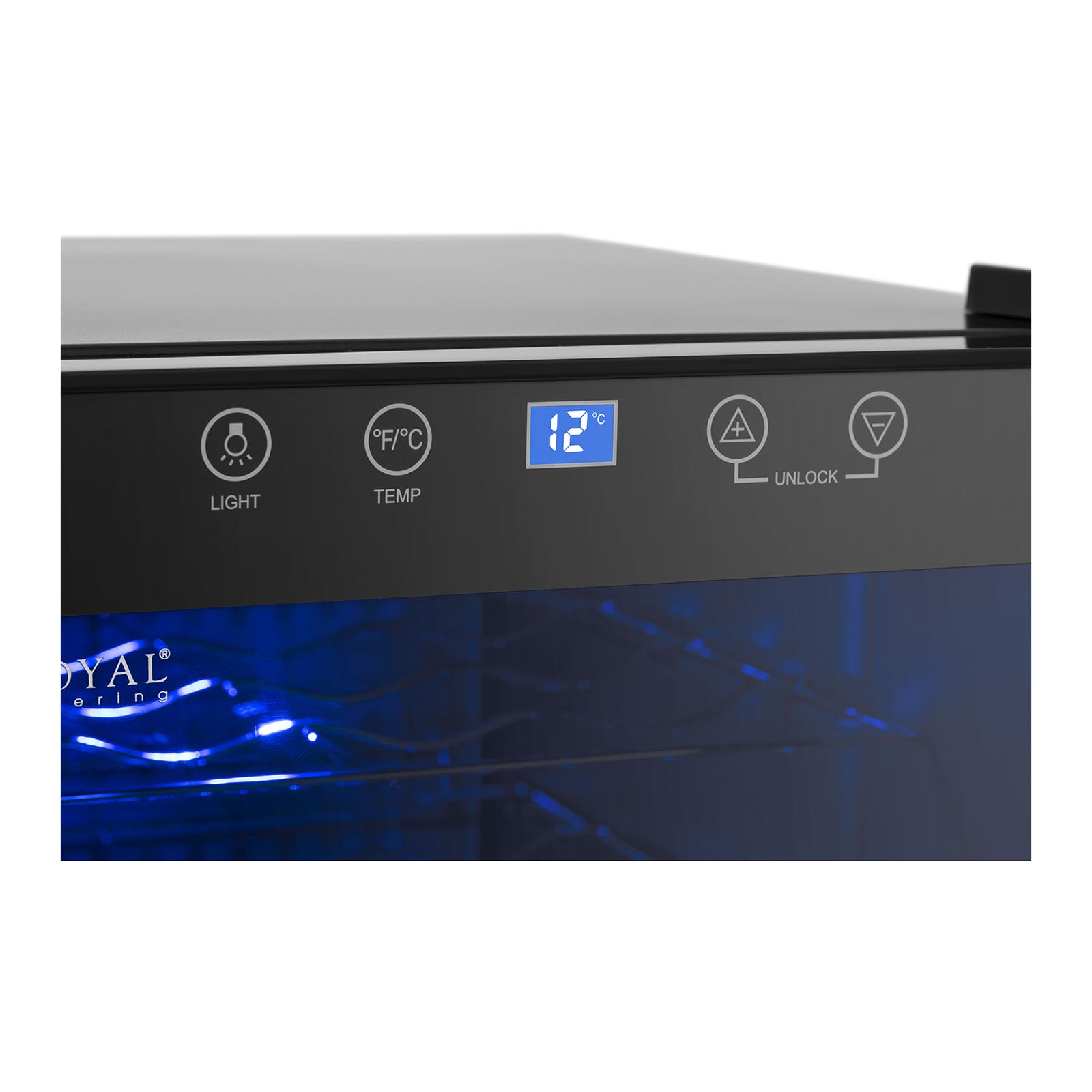 A possibilidade de ajuste do arrefecimento permite ajustar o trabalho para diferentes tipos de bebidas. Pode definir a temperatura entre 4 e 18°C usando o painel de controlo LCD. Graças a isso, o equipamento é adequado para armazenar vinhos tintos e brancos, além de cerveja, cidra e bebidas gaseificadas.