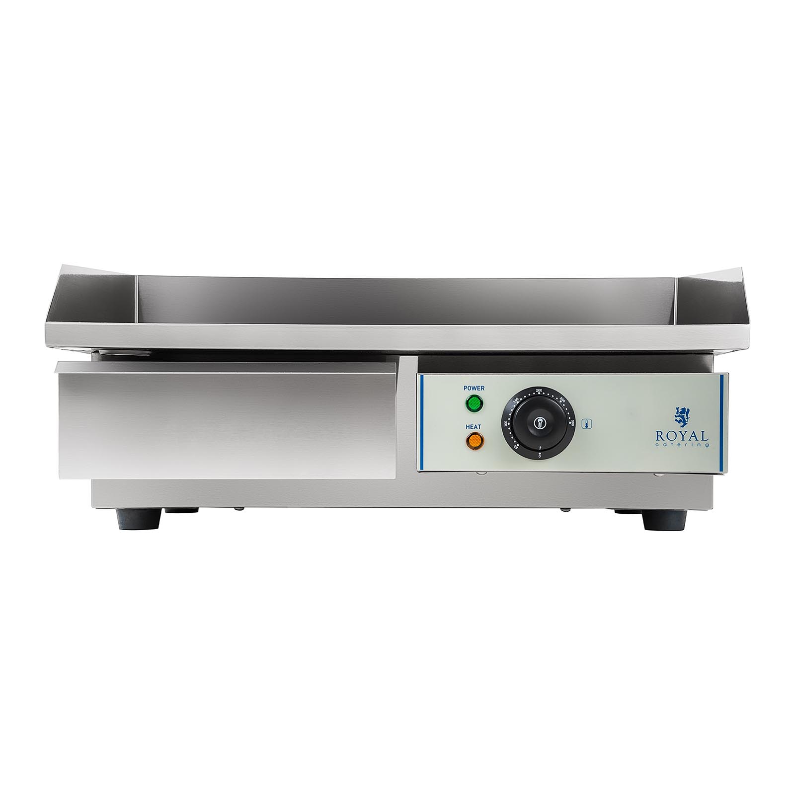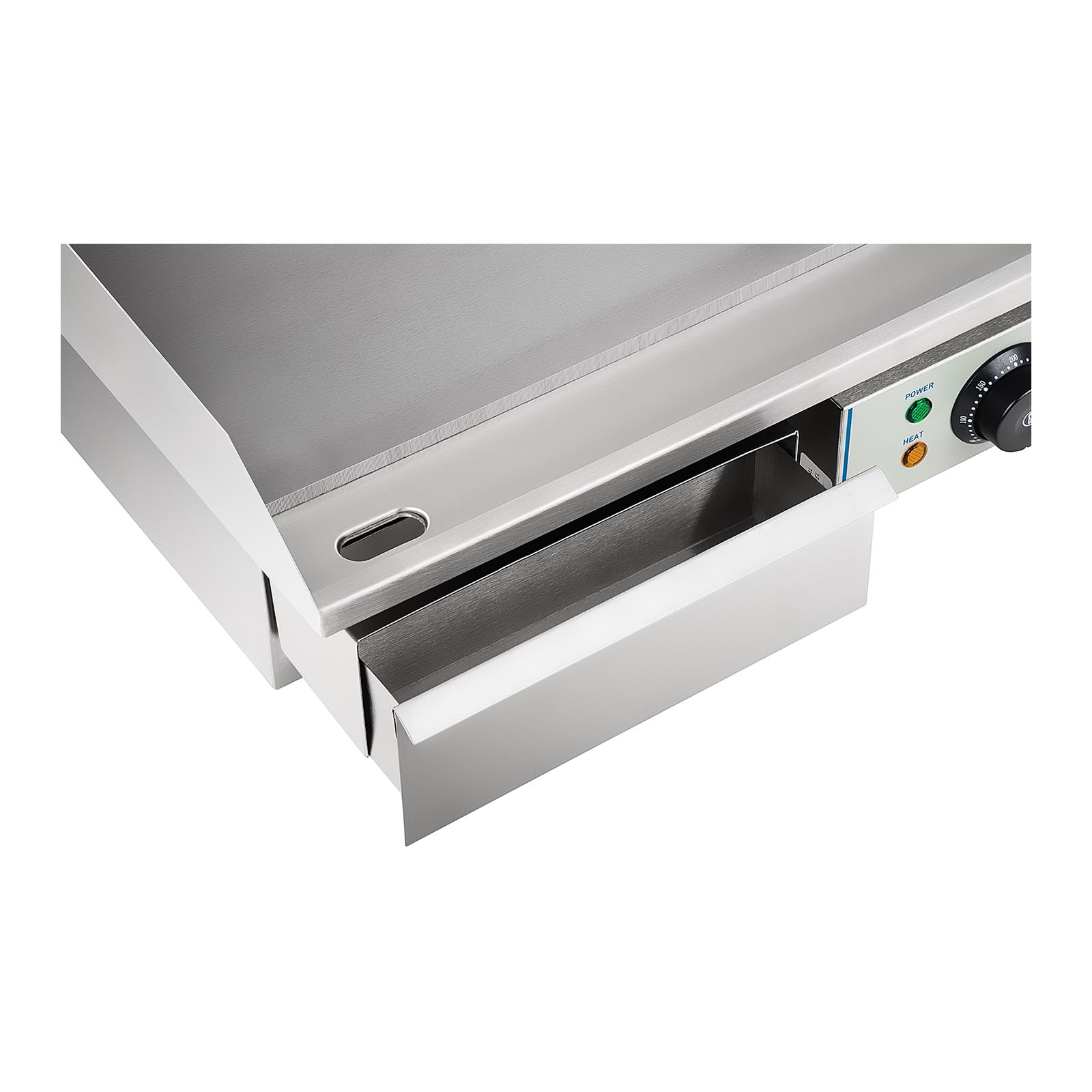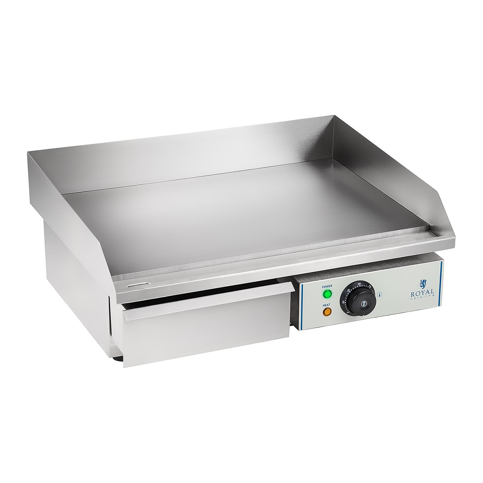 Só utilizou materiais robustos e de alta qualidade na criação deste aparelho. É feito de aço inoxidável e vem equipado com uma chapa com 55 cm de largura. Esta grelha com proteção contra respingos tem uma superfície lisa e a temperatura da chapa é regulada por um termóstato. O aparelho dispõe de um controle de constância de temperatura totalmente automático e de um indicador de prontidão. Tem ainda um tabuleiro que, mediante o ralo de descarga, pode ser usado para recolher o excesso de gordura. Este prático recipiente é removível, o que o torna fácil e rápido de limpar.