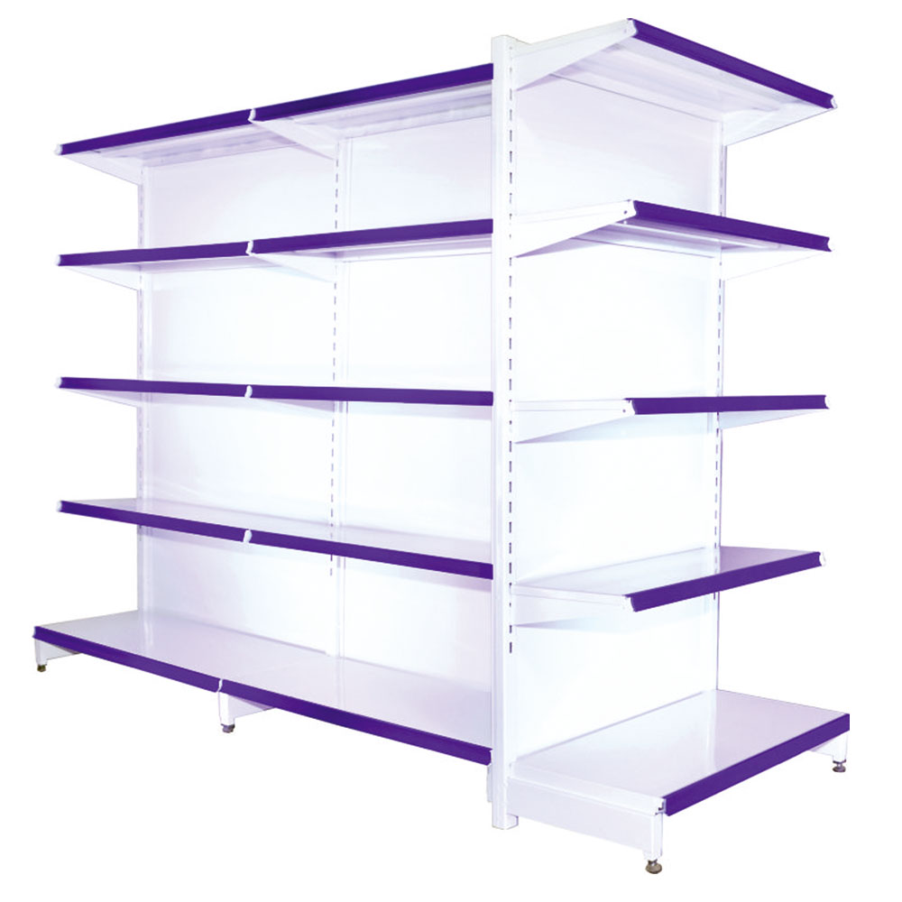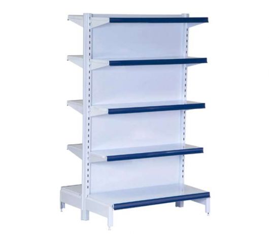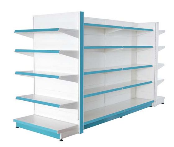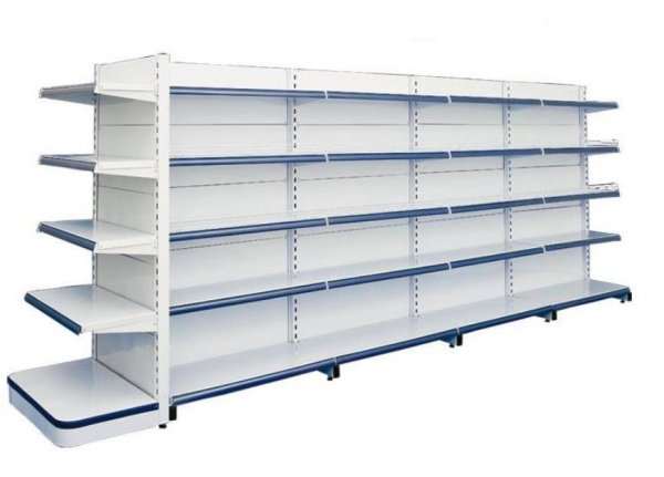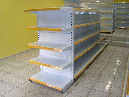 Ilha de Prateleiras Estantes - Dupla de Supermercado com 08 Prateleiras e com 16 Prumos.