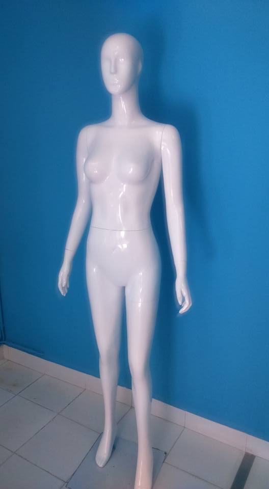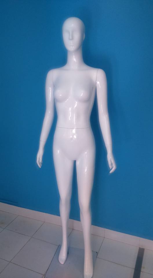 Manequim feminino branco de corpo inteiro em superfície brilhante