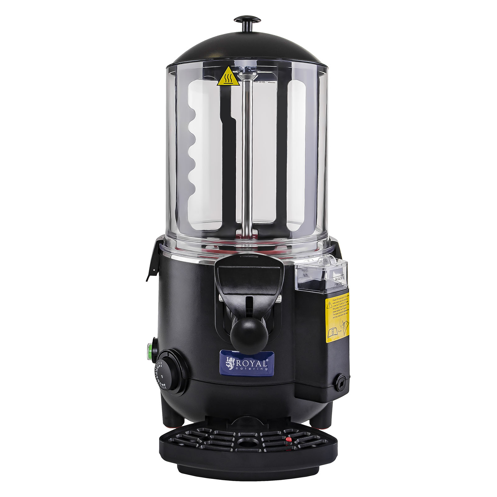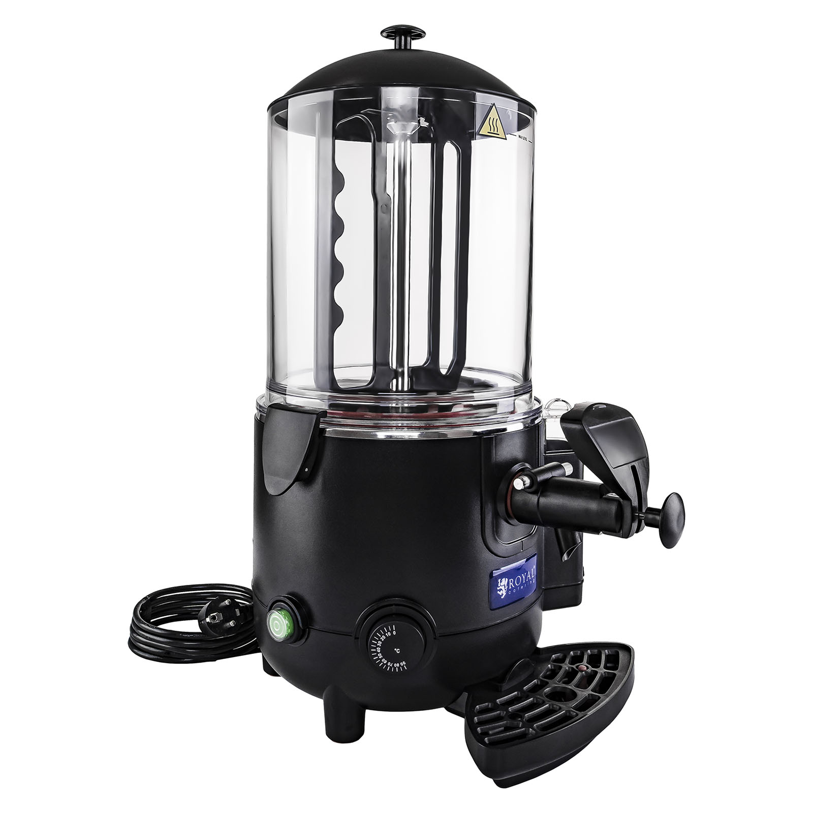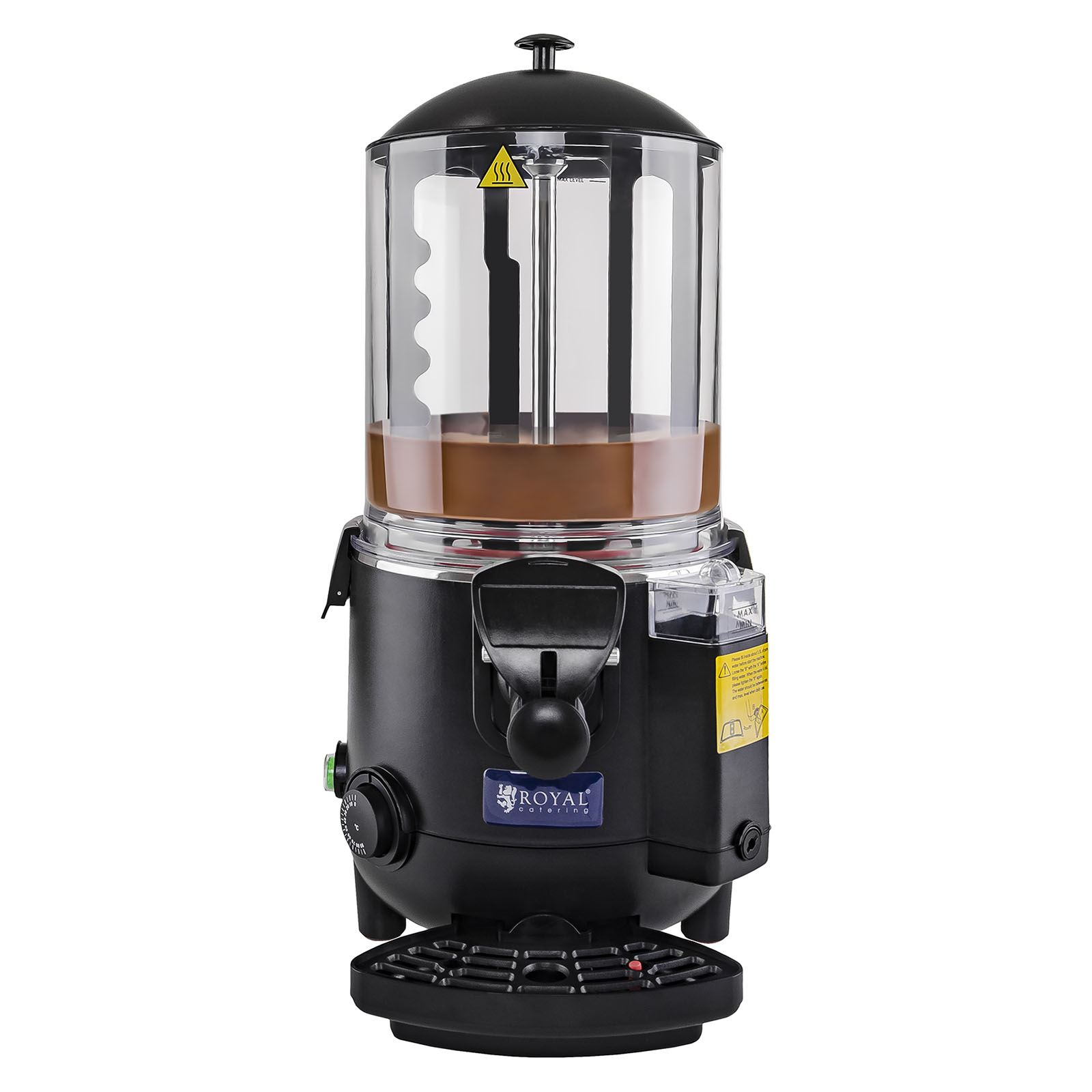 É feita de aço inoxidável de alta qualidade e possui um tabuleiro removível e um recipiente de plástico transparente (também removível), com capacidade para 10 litros, permitindo-lhe preparar grandes quantidades de bebidas. A tampa fecha o recipiente e pode ser removida facilmente graças à pega de isolamento térmico. Na parte inferior do aparelho encontra-se um tabuleiro apara-pingos, o qual impede que as bebidas se entornem. A Máquina de chocolate quente é extremamente robusta, estável e muito fácil de limpar graças aos excelentes materiais utilizados no seu fabrico. Em adição, é bastante silenciosa e permite uma rápida regulação da temperatura até 90 °C.