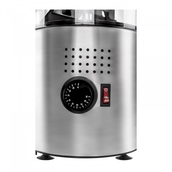 A Máquina de chocolate quente é feita de aço inoxidável de alta qualidade e dispõe de um recipiente de plástico transparente e removível.