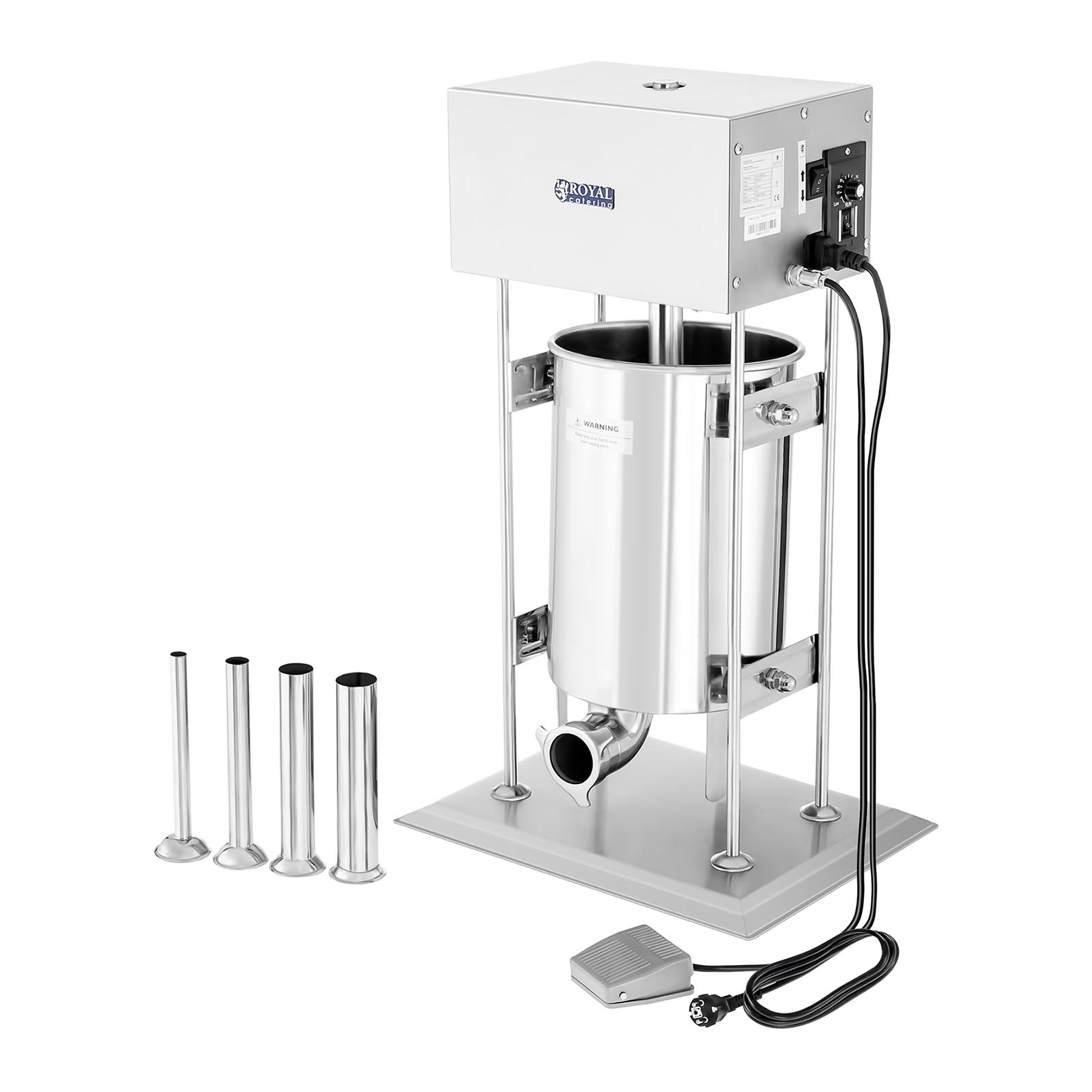 Máquina de fazer enchidos / Chouriço - 10 litros - eléctrica - Motor de 230 W - Capacidade de 10 litros Com pedal De aço inoxidável inclui tubos de enchimento (16, 22, 32, 38 mm)