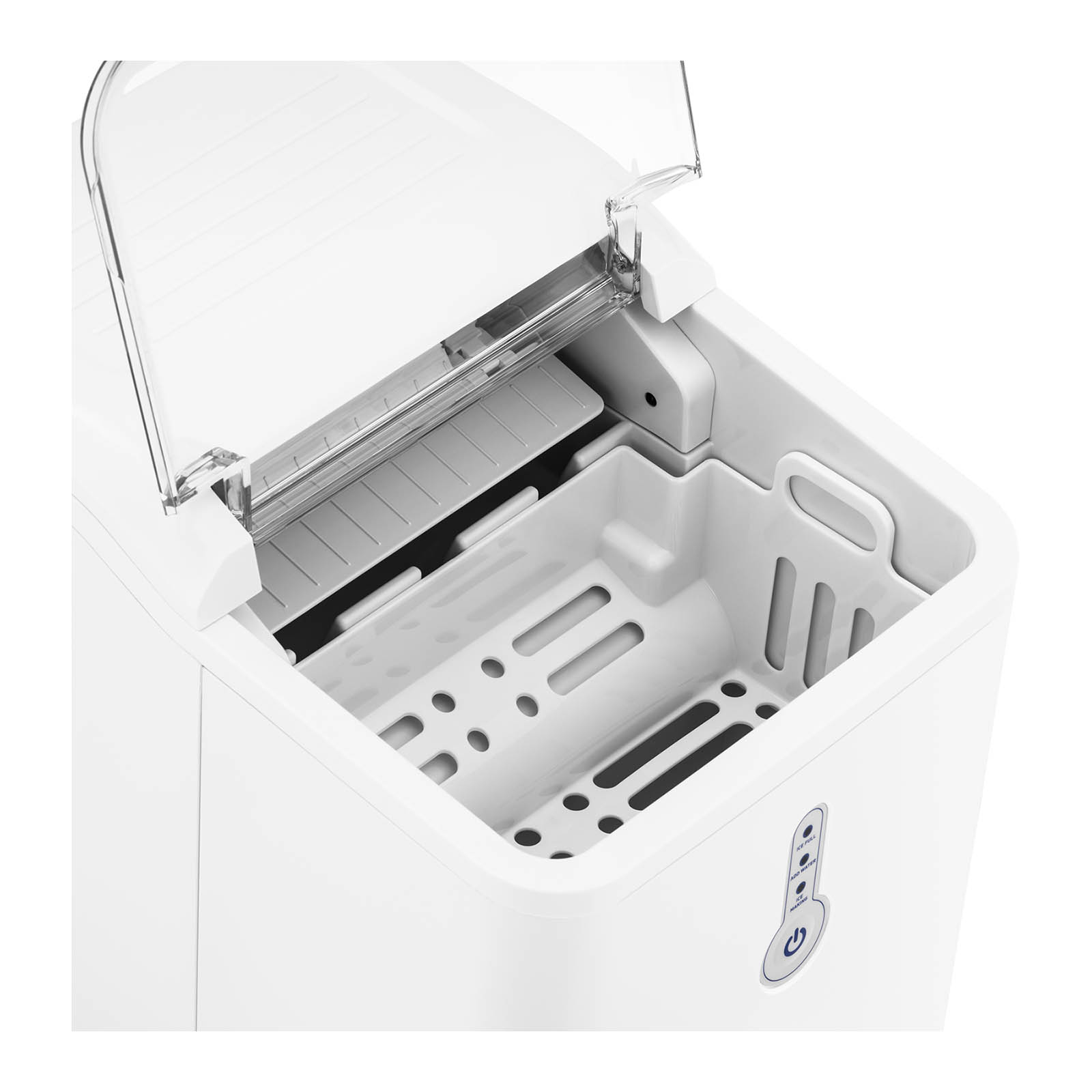A operação fácil é o resultado da automatização de todo o processo. Pode definir os parâmetros de funcionamento da máquina de cubos de gelo com o painel de controlo intuitivo equipado com botões. A porta transparente com dobradiças ocultas proporciona um acesso conveniente ao interior. Utilizará a pá fornecida para servir o gelo.