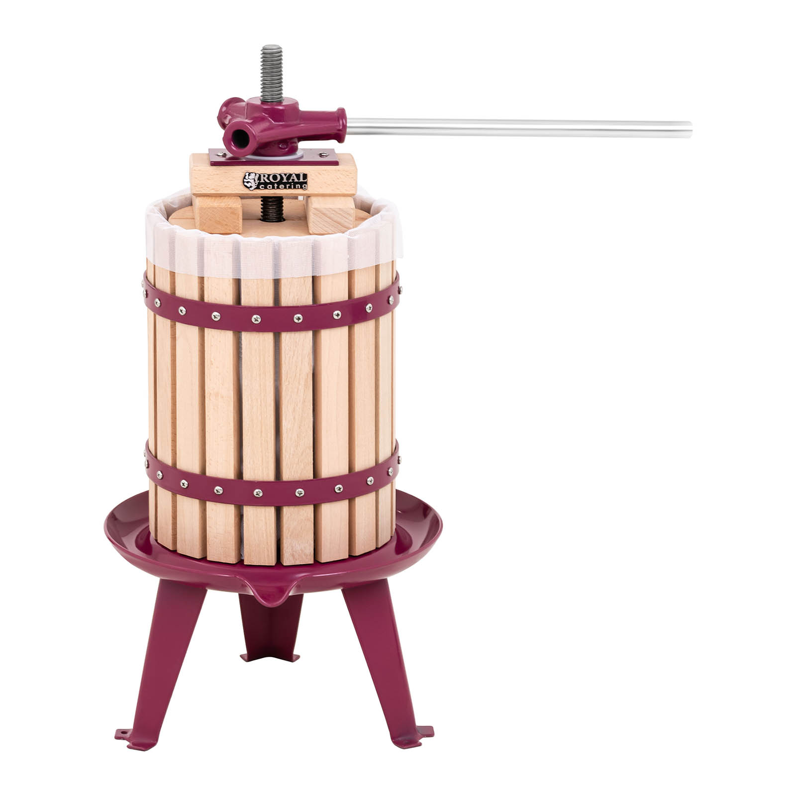 A prensa de frutas é um equipamento funcional para uso profissional e amador. Funciona bem em vinhedos, quintas biológicas, agro turismo e casas de amantes de sumos frescos ou de vinificação por Hobbes. O modelo caracterizado pela sua robustez. É feito de ferro e madeira de alta qualidade.